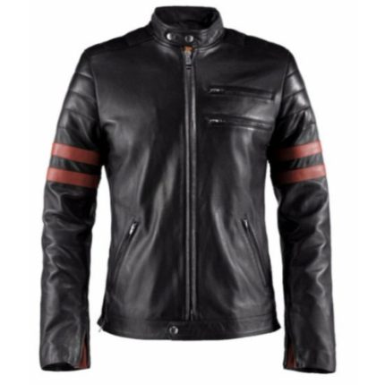 Biker Black Leather Jacket with Red Stripes ZILG-129