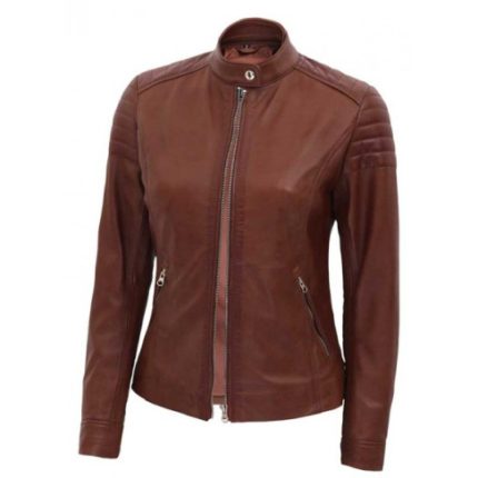 Brown Slim Fit Leather Jacket Women ZILG-140